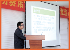 決賽當天,公司銷售副總孫總、行政人力副總董總、財務(wù)副總程總作為決賽評委出席了比賽活動,領(lǐng)導(dǎo)們也針對比賽提出了意見與建議:培訓(xùn)工作,是企業(yè)發(fā)展、成長中必不可少的部分,建設(shè)自己的培訓(xùn)師隊伍,有利于員工更加方便、快速的掌握業(yè)務(wù)知識及公司產(chǎn)品知識,有利于各部門業(yè)務(wù)知識的強化與提升,通過培訓(xùn)比賽,部分員工的培訓(xùn)能力有了較全面的展示,但培訓(xùn)是一項綜合能力要求較高的工作,我們?nèi)孕杓訌娕嘤?xùn)能力的培養(yǎng)和鍛煉,組建出自己的人才隊伍。