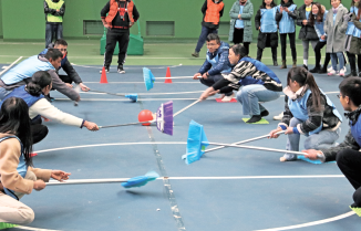 本屆運(yùn)動會除了“觀山長跑”,還設(shè)立了“接力五子棋”、“山寨曲棍球”、“高蹺接力往返跑”、“乒乓球運(yùn)送”等項(xiàng)目?!敖恿ξ遄悠濉本o張、“山寨曲棍球”激烈、“高蹺接力往返跑”熱鬧、“乒乓球運(yùn)送”刺激。身處賽場,哪怕你是站在一旁的拉拉隊(duì)、裁判,也會融入這熱烈的氛圍當(dāng)中,看著運(yùn)動員們認(rèn)真努力、奮力拼博的姿態(tài),你也會動容。有人臉上掛著不輸給專業(yè)運(yùn)動員的認(rèn)真神情,有人緊張得攥緊了一對小拳頭,有人聲嘶力竭的為運(yùn)動員加油,有人為順利抵達(dá)終點(diǎn)的隊(duì)員歡呼雀躍……